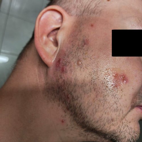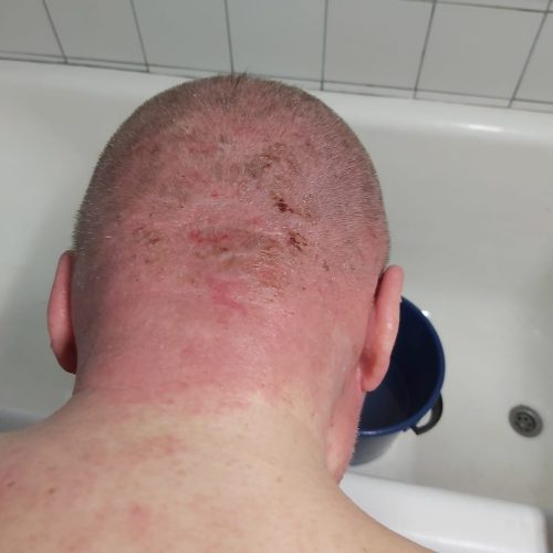 Kahden viikon huuhtelu kaksi kertaa päivässä 0,5 ppm pitoisella otsonivedellä poisti yllättäen tulehduksen ja iho parani kokonaan.