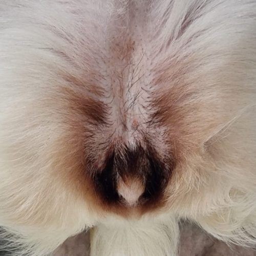 Seitsemänvuotias koira kärsi emätinhiivasta, jota oli aiemmin lääkitty klooriheksidiinillä, kortisonisuihkeilla sekä moloksanilla suun kautta ja suoraan emättimeen annosteltuna.